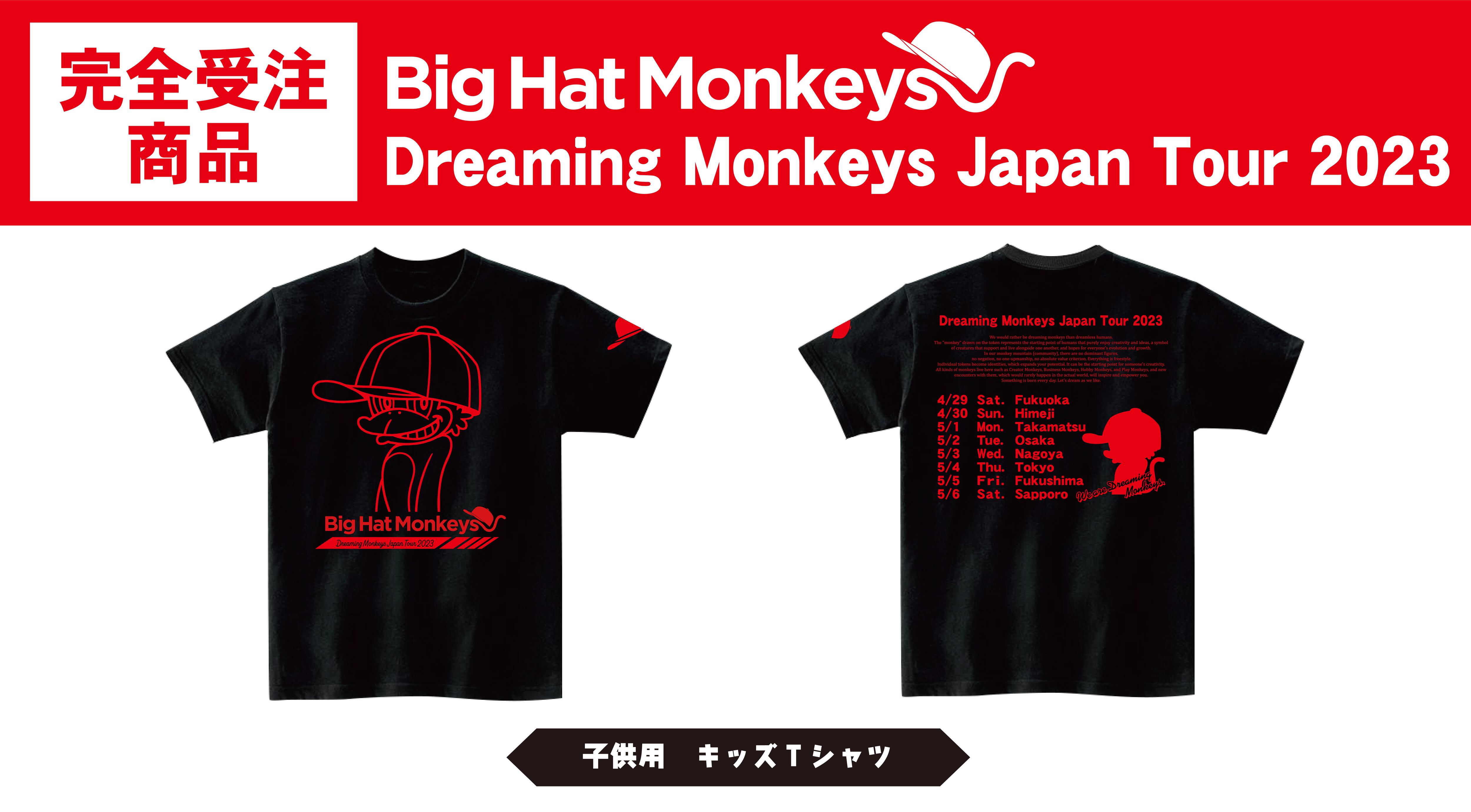 NFTコレクション『Big Hat Monkeys』の2023年4月~5月にかけて開催される猿山全国ツアー「Dreaming Monkeys Japan Tour 2023」のキッズTシャツです。
